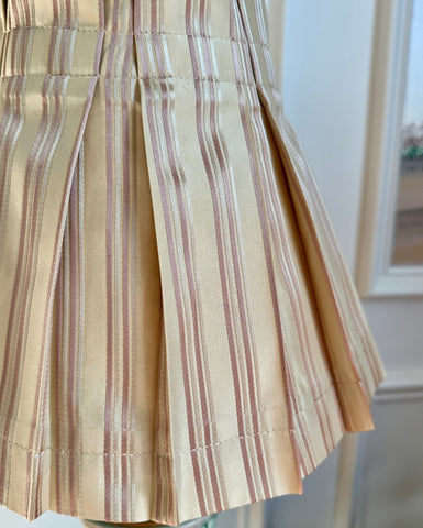 Antique  Japanese vase in pastels. Thibaut woven silk stripe box pleat lamp shade in blush and ivory. French wired.